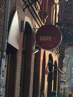 Geführt hat mich mein Spaziergang in mein liebstes Café, die Campussuite, die zwischen dem Gebäude der anorganischen Chemie der Uni Hannover und der Nordstadt liegt. In diesem Café bin ich seit meinem ersten Tag an der Uni (das ist sage und schreibe 2009 im Oktober gewesen!) immer wieder gerne Gast. Hier habe ich die Mittagspausen von Laborpraktika, die Lernzeit für meine erste schwierige Chemieklausur und viele schöne Momente mit Kommilitonen verbracht und hier wird man nicht komisch angeguckt wenn man über Stunden bei Kaffee um Kaffee über seinen Lernzetteln brütet. Komischerweise kann ich mich hier besser konzentrieren als zu Hause am Schreibtisch oder in einer Bibliothek, weshalb ich immer wenn es in der Uni mal haarig wird hier herkomme.