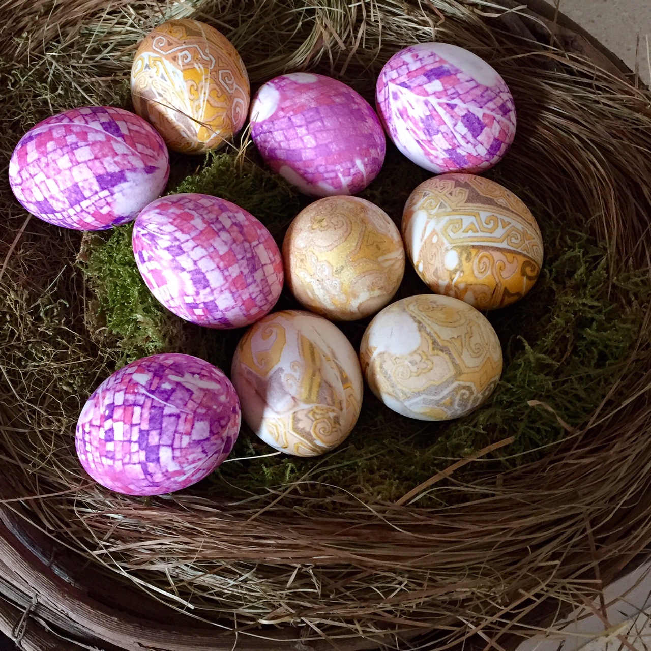 1. Ich habe es endlich geschafft Eier zu färben und zwar mit Seidentüchern! Ich bin begeistert vom Ergebnis, und weiß was ich für nächstes Jahr Ostern sammel…