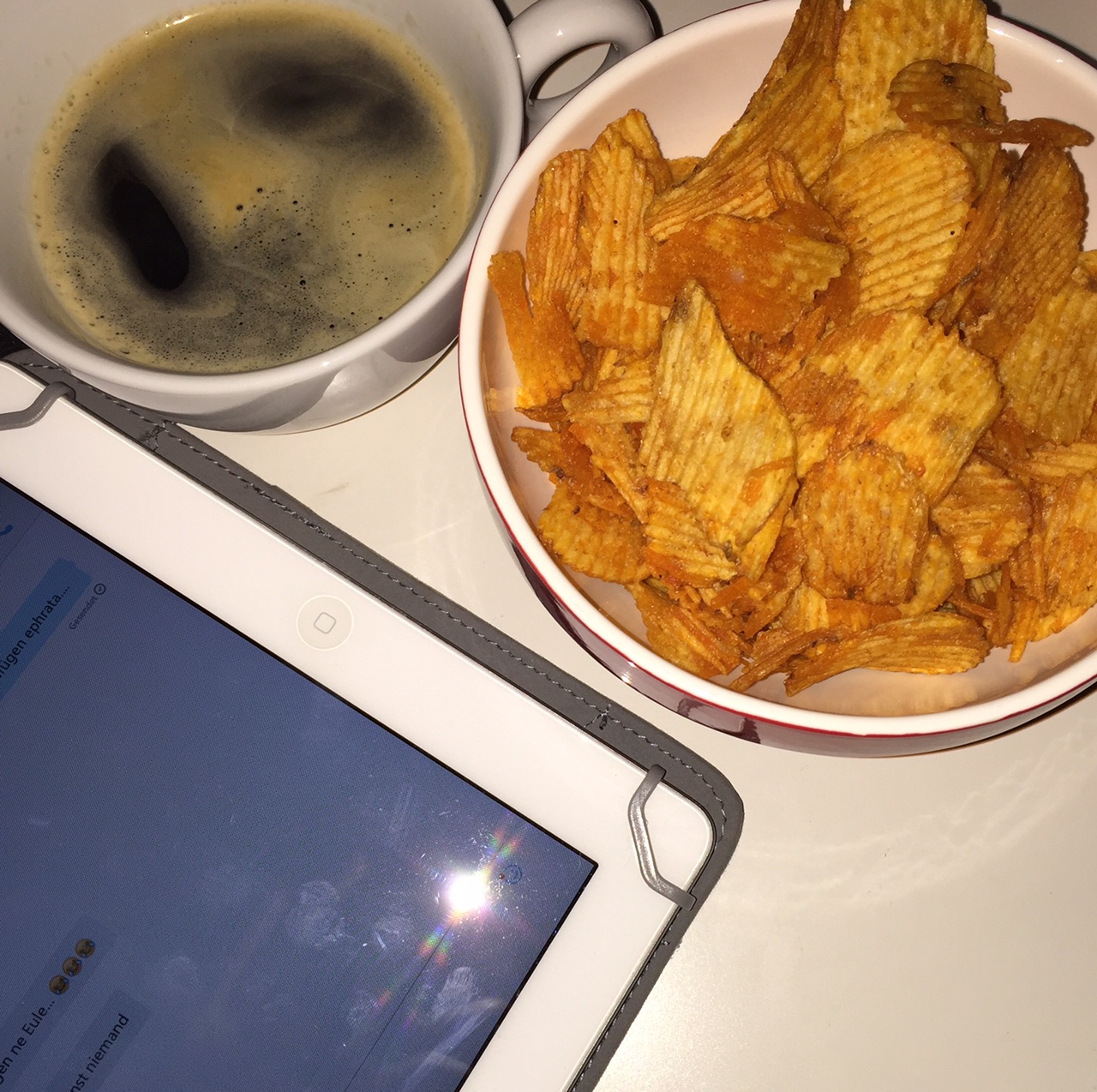 Hihi… Das dicke Eis gab's bei uns schon Samstag und die Chips auch. Von daher bin ich im Kalorienbudget mindestens gleichauf 🙂