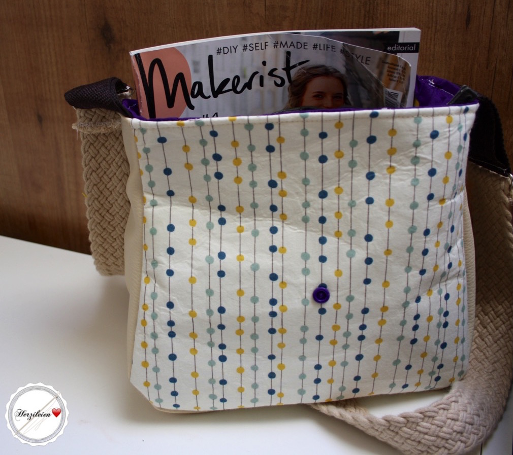 Statt des vorgesehenen Klettbandes habe ich einen Kamsnap gesetzt, da Druckknöpfe fester schließen und ich ingern mit einer Tasche aus dem Haus gehe, die zu leicht zu öffnen ist.