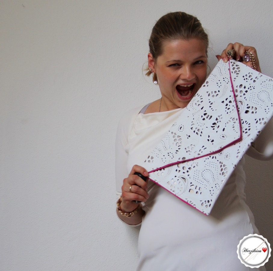 …. aber wetterbedingt mag ich gerade keine Strickjacke fotografieren, und habe kurzfristig umgeplant. Und so zeige ich euch heute meine Maxi-Clutch.