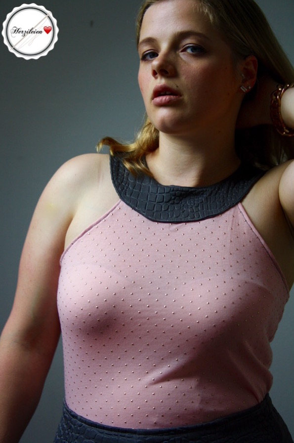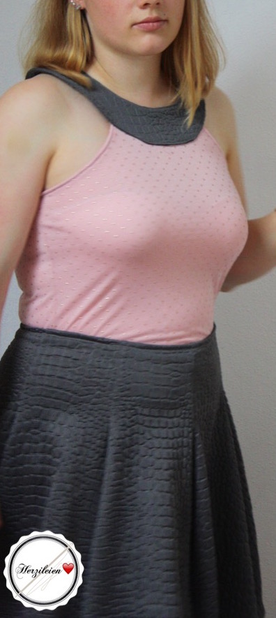 Top: Mor Leylin von Karlotta Klamotta, rosa Stoff von Butinette, grauer Scuba aus einem Privatverkauf