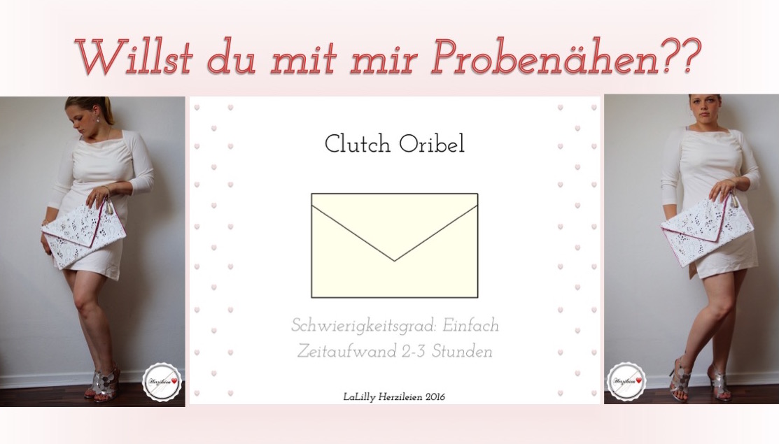 Ich suche motivierte, kreative, fröhliche, freundliche, friedliche und engagierte Damen und Herren, die Lust haben meinen ersten Schnitt, die Oribel-Clutch auf Herz, Nieren, Fehler und Verbesserungsbedarf zu testen und mich mit konstruktivem Feedback und schönen Fotos auf dem letzten Stück Weg zur Veröffentlichung zu unterstützen.