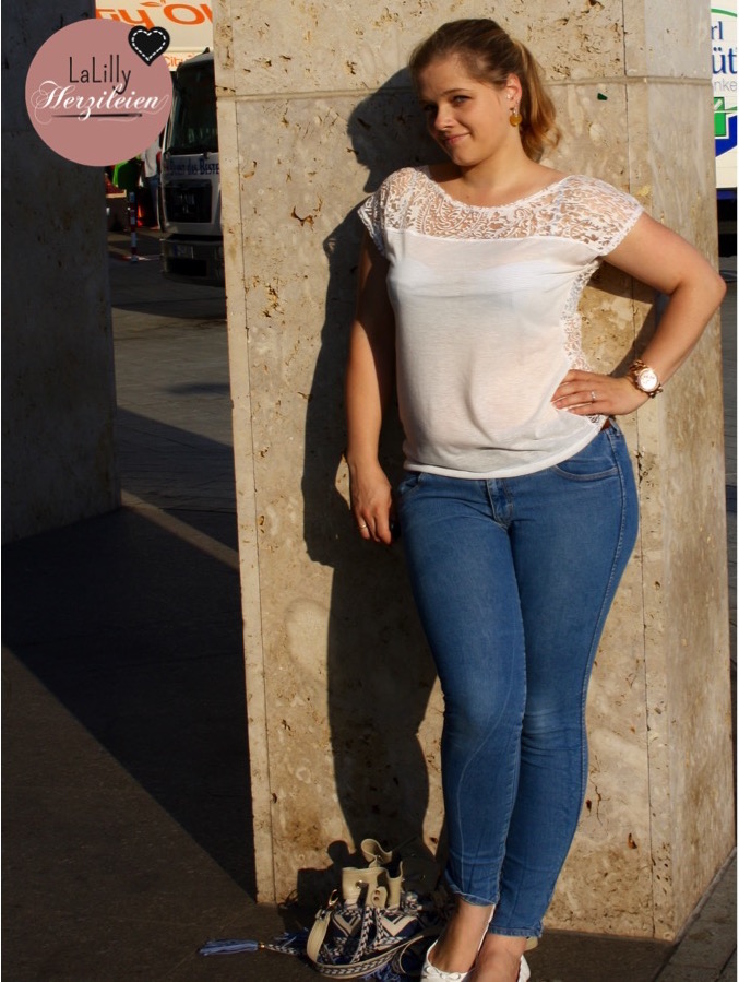 Bei T-shirts ist das anders. Ich bin tatsächlich ein Jeans- und T-shirt Typ, nur gefallen mir die Outfits meistens nicht gut genug um sie zu fotografieren. Dieses Mal ist das anders, die Kombination aus Jeans, Kimonotee und der Tasche die die Farben wieder aufgreift, hat es mir echt angetan! Bequem und trotzdem nett anzusehen, so sollte Mode immer sein…