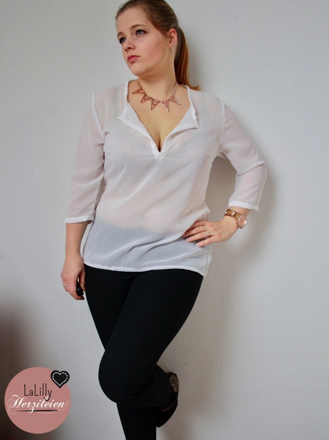 EIne weiße Chiffonbluse stand schon seit Jahren auf meiner Wunschliste für meinen Kleiderschrank. Weiße Blusen sind immer seriös- mit Chiffon aber durch die Transparenz trotzdem raffiniert- und eine echte Herausforderung in Sache Geduld! Denn Chiffon will gut versäubert werden um nicht schon beim Vernähen auszufransen, und ist beim Einfassen von Ausschnitt und Ärmelsäumen flutschig und ein wenig unberechenbar….