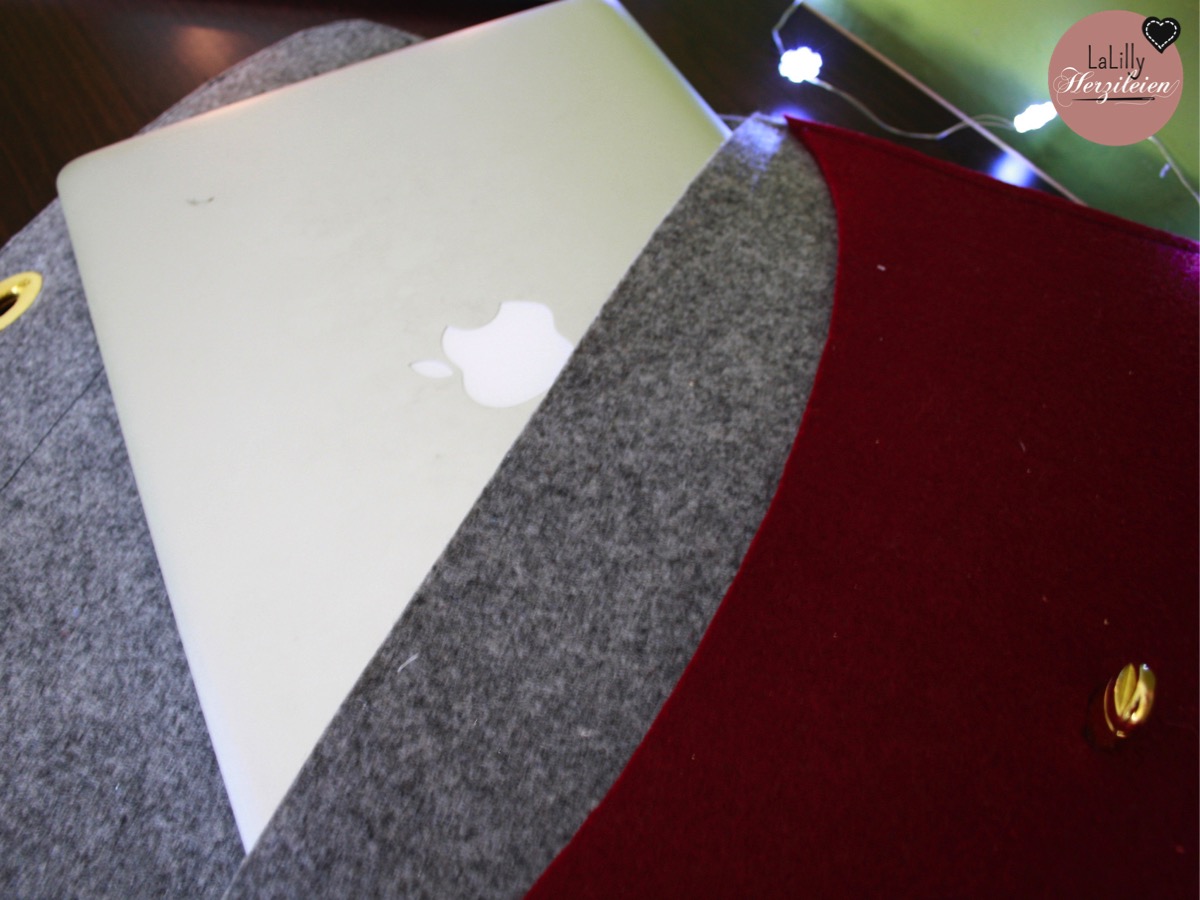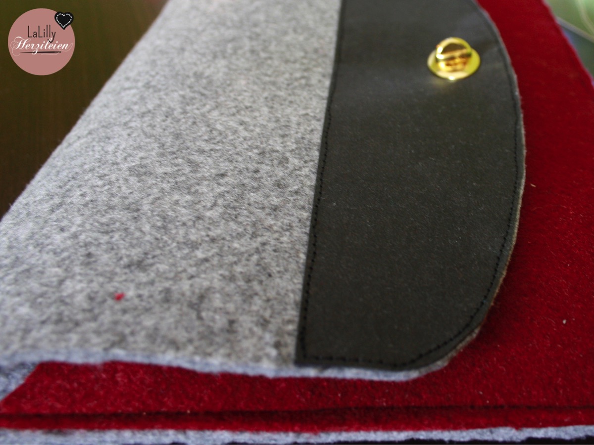 Schnitt: „verhüllt“ für Laptops von Coelner Liebe gibt es hier. Genäht aus Filz von Stoffideen Hannover und Snappap von Snaply. Drehverschluss über Dawanda bei Petit Mercerie