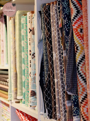 Dass der Laden so gut läuft liegt auch daran, dass man nicht nur vor Ort sondern auch in ihrem Onlineshop auf die tolle Auswahl von Stoffen zugreifen kann. Natürlich hat man vor Ort manchmal den Bonus einen Stoff zu ergattern, der so begehrt ist, dass er es garnicht bis in den Onlineshop schafft, aber auch online hat man eine riesige Auswahl! Überhaupt ist die Zusammenstellung des Sortiments überwältigend. Es gibt alles was das Herz begehrt, Patchworkstoffe, viele Jerseys, Dekostoffe, Strick und Stepp – Nähgarn, Bakerstwine, Overlock-Konen und Taschenzubehör, das übrigens genau auf die Ebooks von Hansedelli abgestimmt ist, die auch über den Onlineshop erhältlich sind.