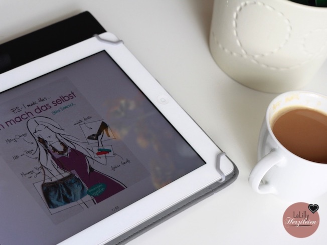 Das Cover und auch die Illustrationen in der 53 Seiten großen Datei, die immer wider zwischengeschoben werden, finde ich durchaus ansprechend. Leider sind die Seiten meistens nur zu einem Drittel mit Text beziehungsweise Anleitungen gefüllt. Vor jedem Projekt befindet sich eine leere Seite auf der ein Bild quasi angekündigt wird, dann folgt eine Collage, die einige Bilder aus der Highfashion-Welt zusammenfasst, und als „inspirierendes Moodboard“ gedacht ist das die Autorin zum folgenden Projekt zusammengestellt hat. Im Anschluss wird dann erst in sehr knappen Sätzen und dann in wenigen Bildern jedes Projekt beschrieben.