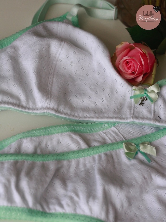 „Im Sommer ist weiße Unterwäsche ein Muss!“, habe ich irgendwo auf einem Blog gelesen, in den vergangenen Wochen. Gerade zu der Zeit hatte ich zugeschnitten, und überlegte, wie ich das schlichte Weiß es ein wenig aufpeppen könnte, sodass es nicht langweilig aber trotzdem als Alltagsunterwäsche tauglich sein würde.