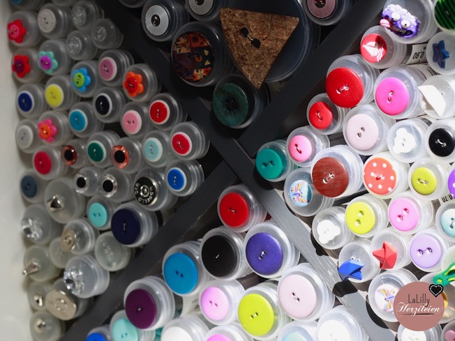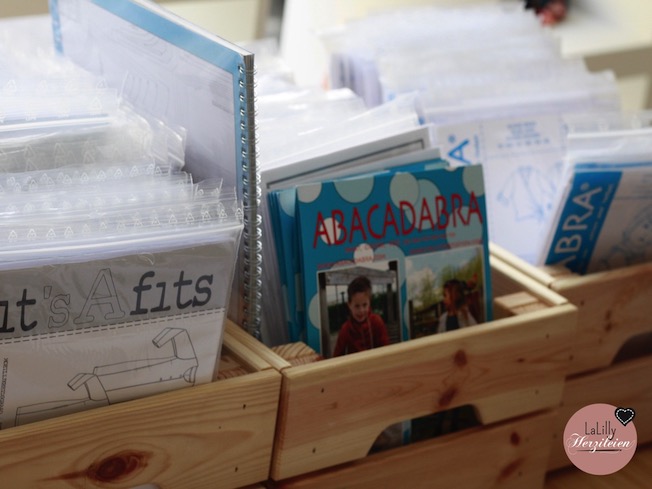 Was mich am meisten beeindruckt hat- auch wenn es eher nebensächlich erscheint, ist, wie viele kreative Aufbewahrungslösungen für Nähzutaten bei Stoffwerk im Verkaufsraum zu sehen sind, die man einfach auch für sein eigenes Nähzimmer umsetzen kann. Der Laden lohnt sich also auch für jeden, der gerade auf Stoffdiät ist um mehr Ordnung zu schaffen- Bänder auf Rollen in Dachrinnen, Kleinteile in hübschen kleinen Gläsern in einem Regal mit geringer Tiefe, umfunktionierte CD Regale und die Flaschenunterteilungen für die in Nähzimmern ohnehin beliebte Kallax Serie vom schwedischen Möbelriesen– es gibt unheimlich viel zu entdecken, das für zu Hause inspiriert!