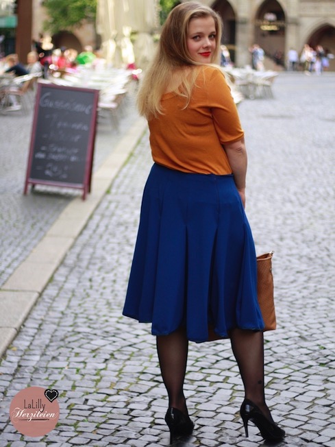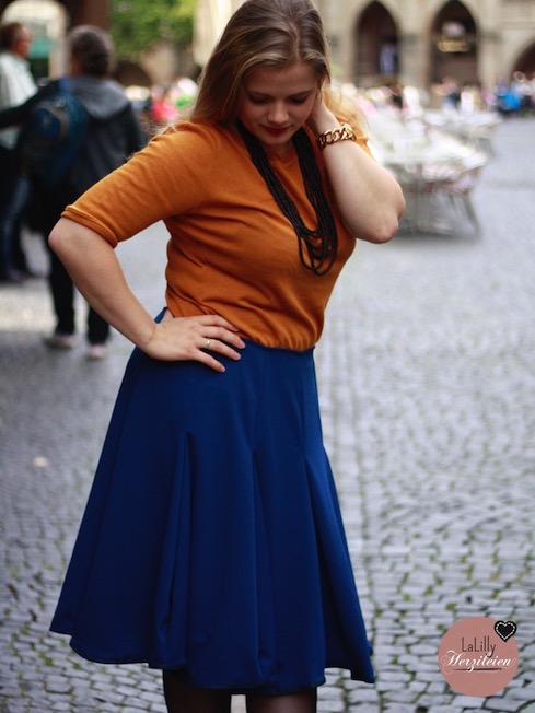 Daher ist mein Projekt für den September bei den „12 Colours Of Handmade Fashion“ viel unspäktakulärer ausgefallen, als ich es geplant oder mir gewünscht hatte. Ich habe es nicht extra für das Thema Orange genäht, sondern hatte es kurz vor der Bekanntgabe des Themas fertiggestellt um mein Outfit für die Bilder zu meinem ersten Rock-Schnittmuster, „Lola“ zu komplettieren. Tatsächlich sind die Bilder ungefähr zu der Uhrzeit entstanden, als Selmin am 1.9. die neue Farbe verkündet hat.