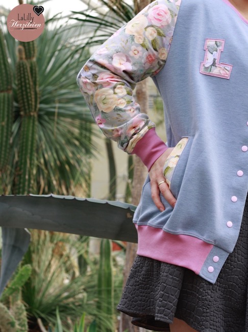 Ich muss gestehen, für mich ist mein Anblick in der Jacke noch immer gewöhnungsbedürftig. Ich habe sie schon im Frühjahr genäht und auch über den Sommer recht oft getragen, trotzdem kann ich sie mit meinem Stil nur schwer vereinbaren. Ich habe sie daher, obwohl ich die Stoffe und das Ergebnis liebe, an meine Schwester verschenkt- ihr Vorname beginnt ebenfalls mit einem L, sodass die Jacke auch zu ihr passt. Letztlich scheitert es für mich am sportlichen Look, der nicht zu meiner restlichen Garderobe passt und auch an den Farben, die eher in meiner Wintergarderobe finde, während die Jacke eher für den Sommer oder Herbst passend ist.