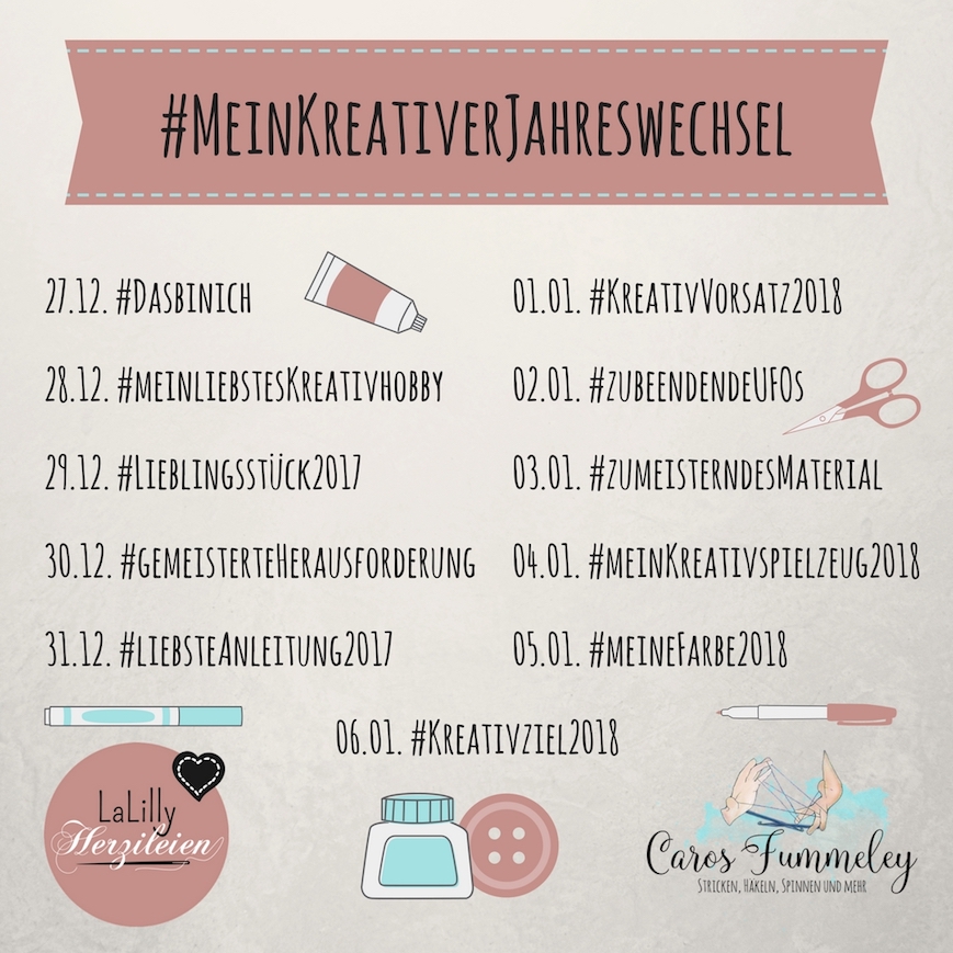 Dieses gedankliche Strukturieren hat mich gemeinsam mit Caro von Caros Fummeley auf die Idee gebracht, eine Instagram-Challenge zum Jahreswechsel in genau diesen Zeitraum zu legen, mit der wir gemeinsam das alte Kreativ-Jahr Revue passieren lassen und das neue planen können.